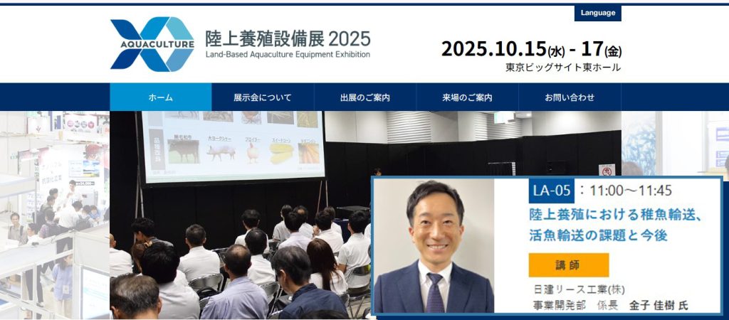 来る10月15日~17日の3 日間、東京ビッグサイト(東京都江東区有明3-11-1)東ホール にて開催される「陸上養殖設備展2025」に出展ならびにセミナーを開催いたします。