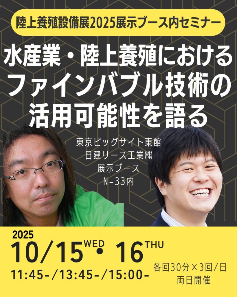 ぜひ、10月15日、16日の2日間「陸上養殖設備展2025 日建リース工業展示ブース」へお越しください。