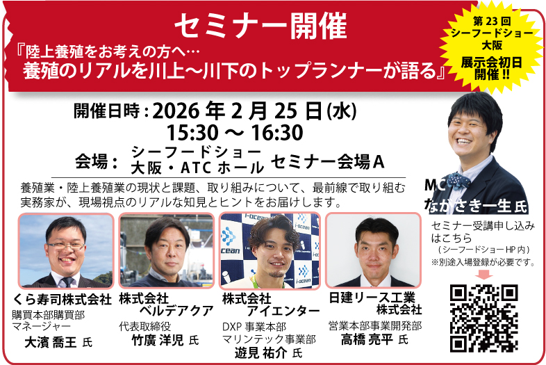 来る2月25日~26日の2日間、大阪・ATCホールで開催される「第23回 シーフードショー大阪」に出展、ならびに特別セミナーを開催いたします。